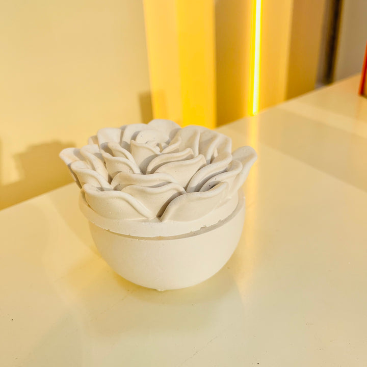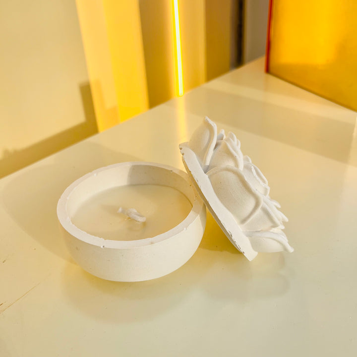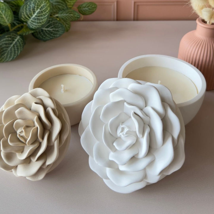 تحف فاخرة أنيقة بغطاء على شكل وردة بارزة ثلاثية الأبعاد تضيف لمسة رومانسية ودافئة إلى أي مساحة. مصنوعة بعناية من خامات عالية الجودة وشمع عطري نقي يمنح احتراقًا نظيفًا ورائحة...