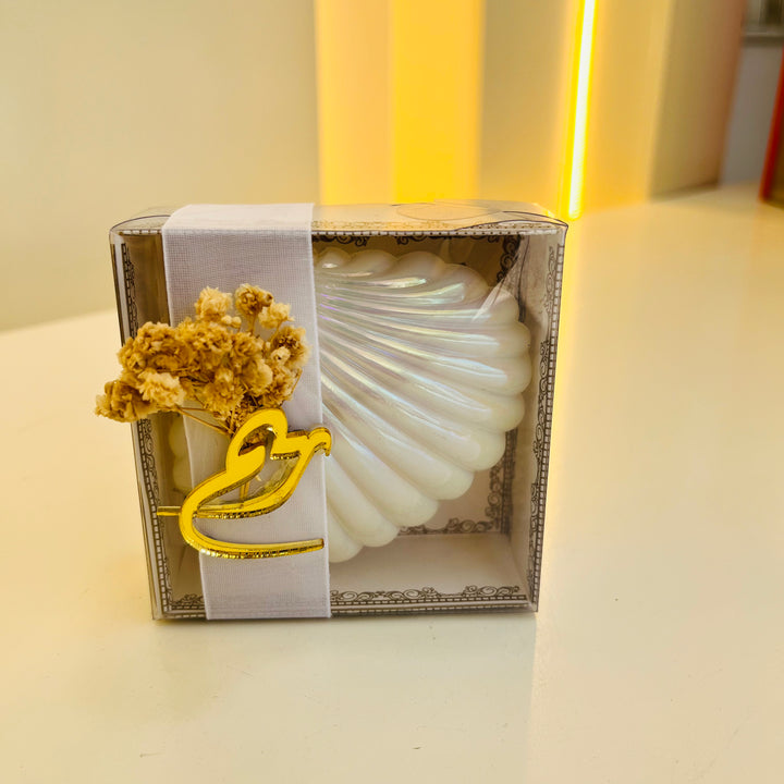 علبة أنيقة بتصميم مستوحى من جمال الصدف البحري، مصنوعه من البلاستيك بلون لؤلؤي لامع يضفي لمسة راقية وفريدة. مثالية للمناسبات كعلبة مميزة للهدايا والتوزيعات. بفضل تصميمها العملي والجذاب، تضيف هذه العلبة لمسة بحرية ساحرة لأي مناسبة.