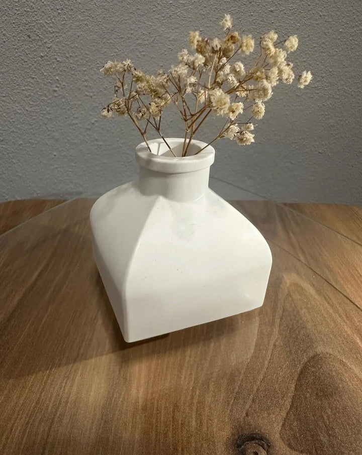 مزهرية سيراميك أنيقة بتصميم عصري وبسيط بلون أبيض مطفأ، تمنح لمسة راقية وهادئة لأي مساحة. شكلها الهندسي المربع مع حواف ناعمة يضيف مظهرًا فنيًا يناسب أنماط الديكور الحديثة والمينيمالية. مثالية لتنسيق الزهور الطبيعية أو الجافة، وتضفي جمالًا على طاولة القهوة، الرفوف، أو المكاتب.
